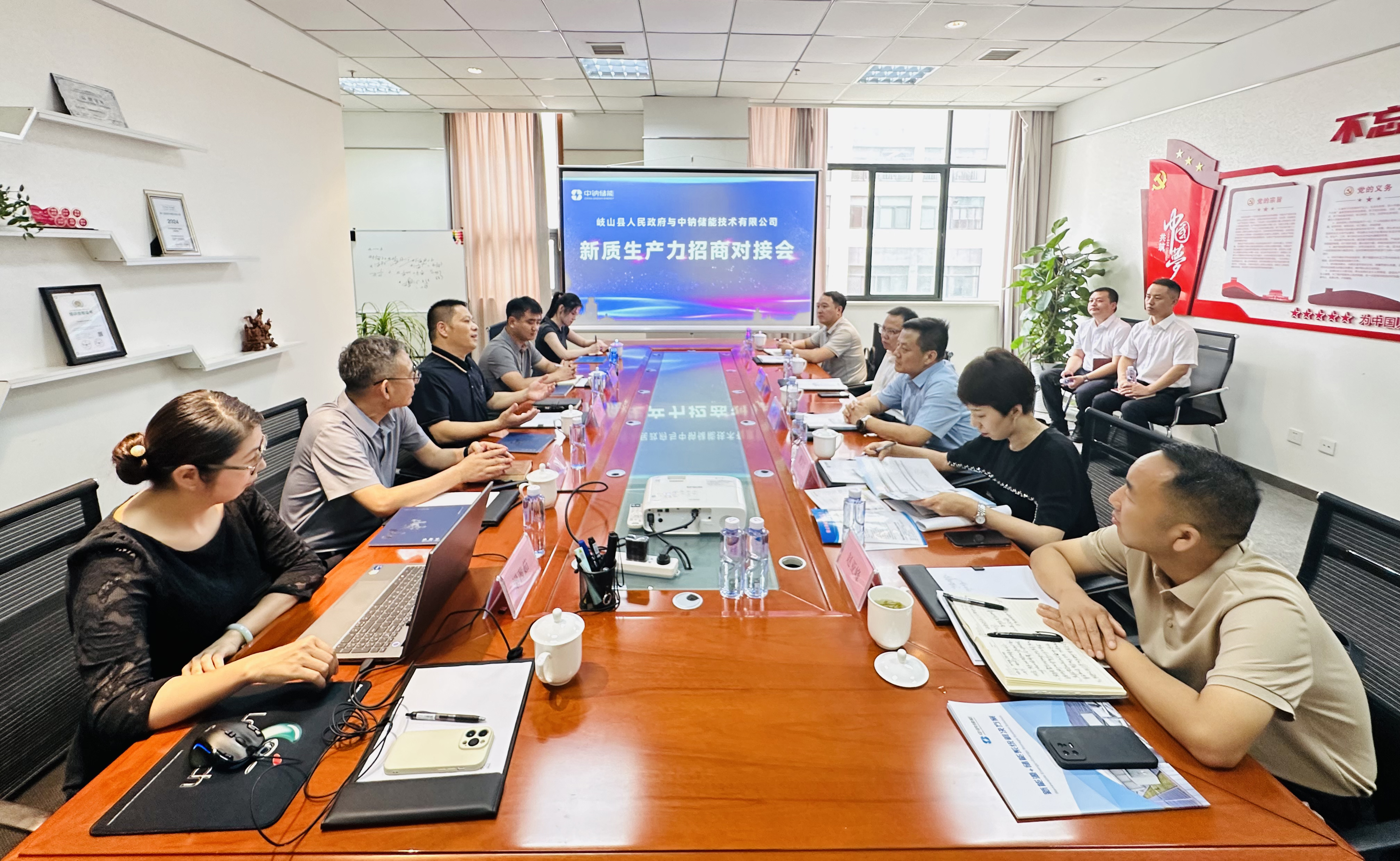 2024年7月23日上午,岐山縣政府副縣長印敏喆、岐山縣招商服務局局長董文婷、岐山縣招商服務局副局長張龍、岐山縣鳳鳴工業(yè)園區(qū)管委會副主任趙亞鋒、秦農(nóng)銀行航天支行副行長張鵬一行蒞臨中鈉儲能研發(fā)中心進行考察并參與新質生產(chǎn)力招商對接會。